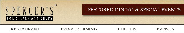 Spencer's is in the business of helping you do business. Do you have a very important client you need to impress? Got a Big Deal working you need to close? Spencer's offers you the perfect location to conduct you business. We have a reputation for serving only Prime Grade Nebraska Beef, award winning wine selections, providing exceptional service, all in a quiet dignified downtown setting. |
